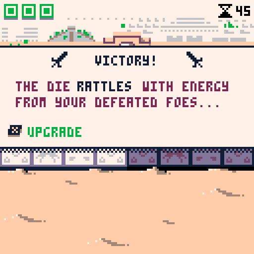 The Hex Die gathers power after each fight - Upgrade its pips, pick a stronger skill, or add unique effects.